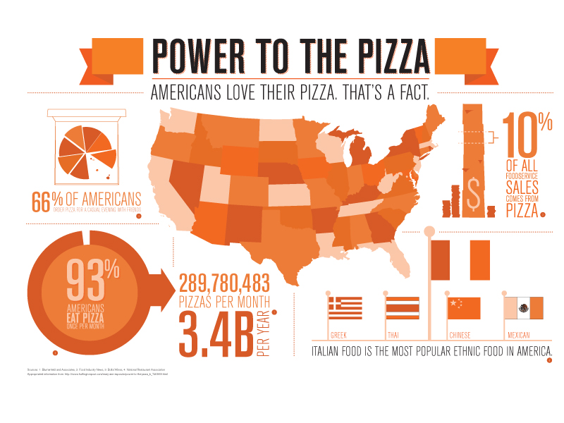 1. This pizza infographic, with multiple facts and figures on United States pizza consumption, proves just how much Americans love their za’.